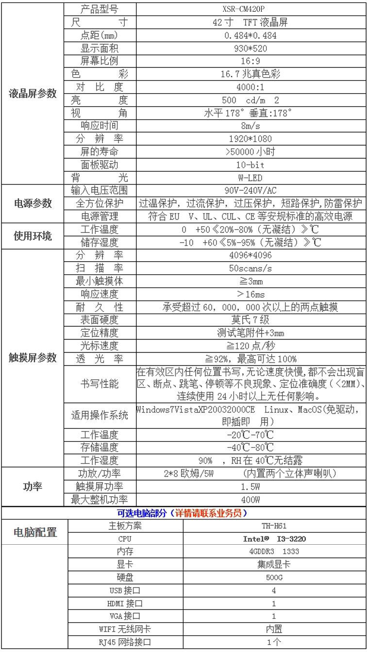 新視銳42寸觸摸一體機(jī)——立式紅外觸摸產(chǎn)品參數(shù):