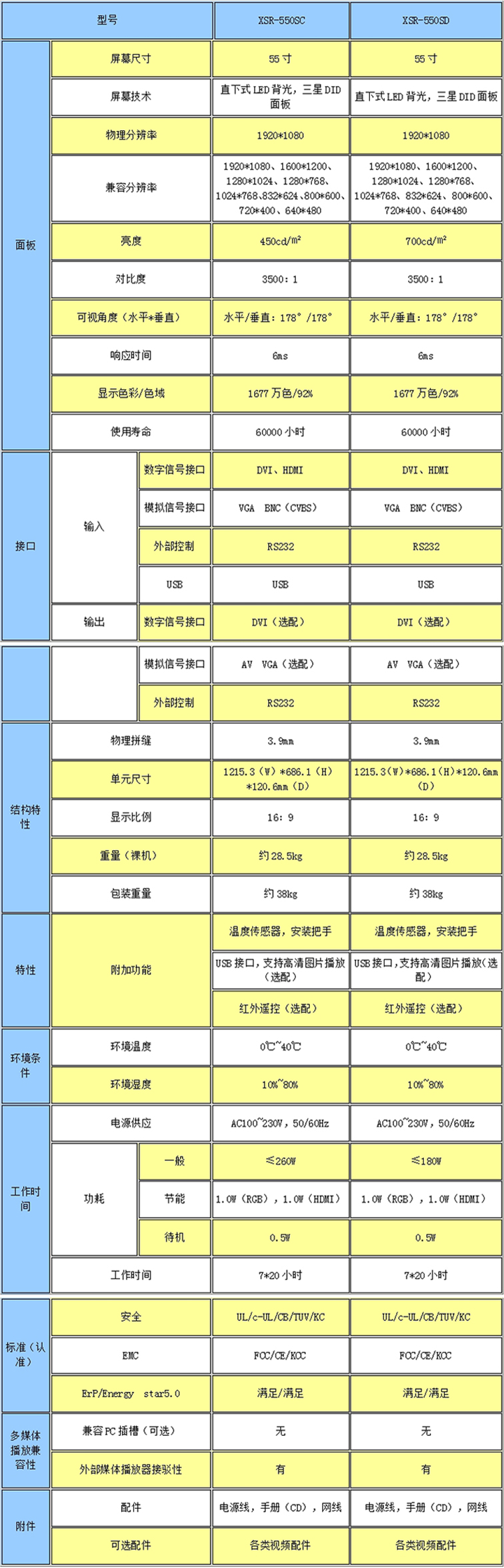 新視銳55寸超窄邊3.5mm拼縫液晶拼接單元產(chǎn)品參數(shù):