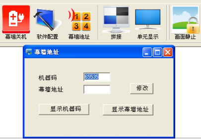 例如以2X2拼接幕為列從左到右數如圖11中的機器碼15569顯示的是第四塊屏幕,那么就把15569填寫到機器碼框中.幕墻地址框中就改成4,點擊修改,然后關掉完成再進行下一個修改.