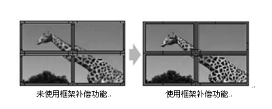 拼接后,拼接單元與拼接單元之間有一個物理的邊縫,可以通過勾選“消除邊框”,并設置相應值來實現圖像的連貫性(注:邊框的值根據屏的物理邊框來設置。例:LTI460HA03的邊框是10MM,在此處設置的值就應該為10)。去掉邊框后的效果見圖5