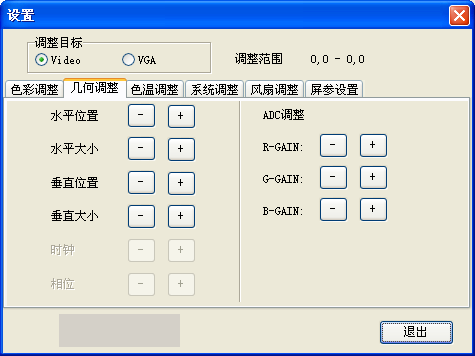 在本菜單里,有Video和VGA兩個選項,在設置時選擇不同的信號源進行設置